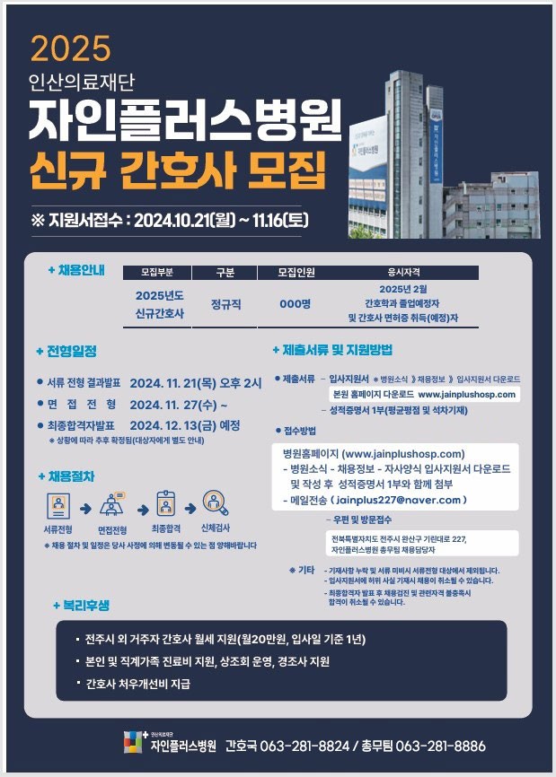[마감]2025년 인산의료재단 자인플러스병원 신규간호사 모집